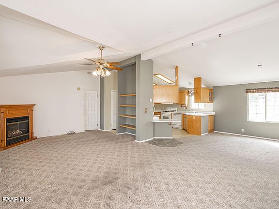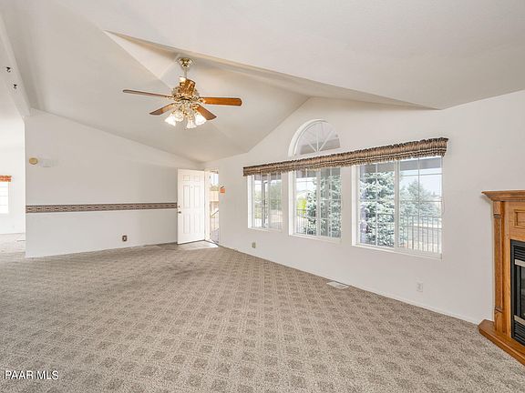 Welcome to your dream home in Vista Verde Estates! This stunning 2-bedroom, 2-bath residence offers breathtaking views and a perfect blend of comfort and style. Step inside to discover a spacious living room with fireplace that flows seamlessly into an open kitchen, ideal for entertaining family and friends. The vaulted ceilings create an airy atmosphere, while the den presents the exciting potential to become a third bedroom. Retreat to the large master bedroom, complete with a walk-in closet and a beautiful master bathroom. This property also features an oversized attached 2-car garage and RV parking area with hookups. The fully landscaped yard, both front and back, ensures low maintenance. Enjoy stunning views of Granite Mountain and the Dells from your front patio.