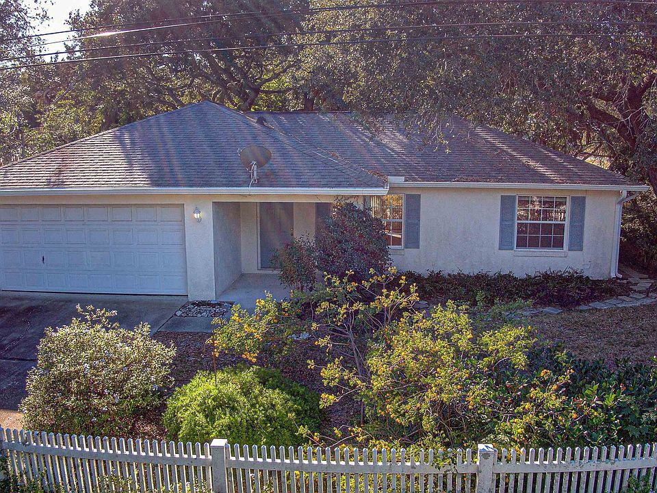 Rare offering in the highly sought after Menendez Park neighborhood. Positioned on a corner lot with one of the highest elevations(Flood Zone X) on Anastasia Island sits this well maintained 3/2 concrete block/stucco home with a 2 car garage shaded by the natural lush landscape to enjoy while relaxing on the covered front porch or the large back deck. While the home is move-in ready and in great condition, a new owner might enjoy updating the flooring, kitchen and baths. All major systems are in sound working condition having been updated with new roof/gutters in 2014 and HVAC system in 2023. Who doesn't want the competitively priced home in a great neighborhood with a white picket fence?