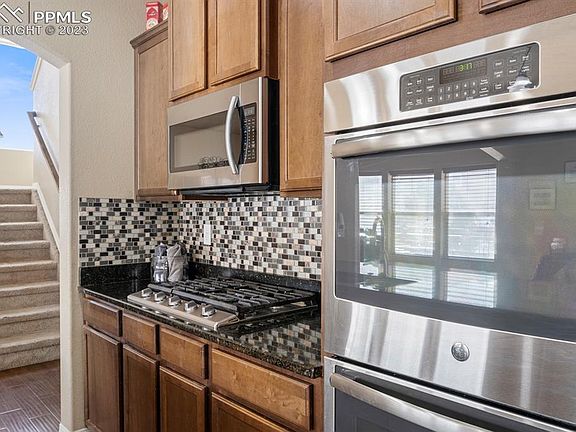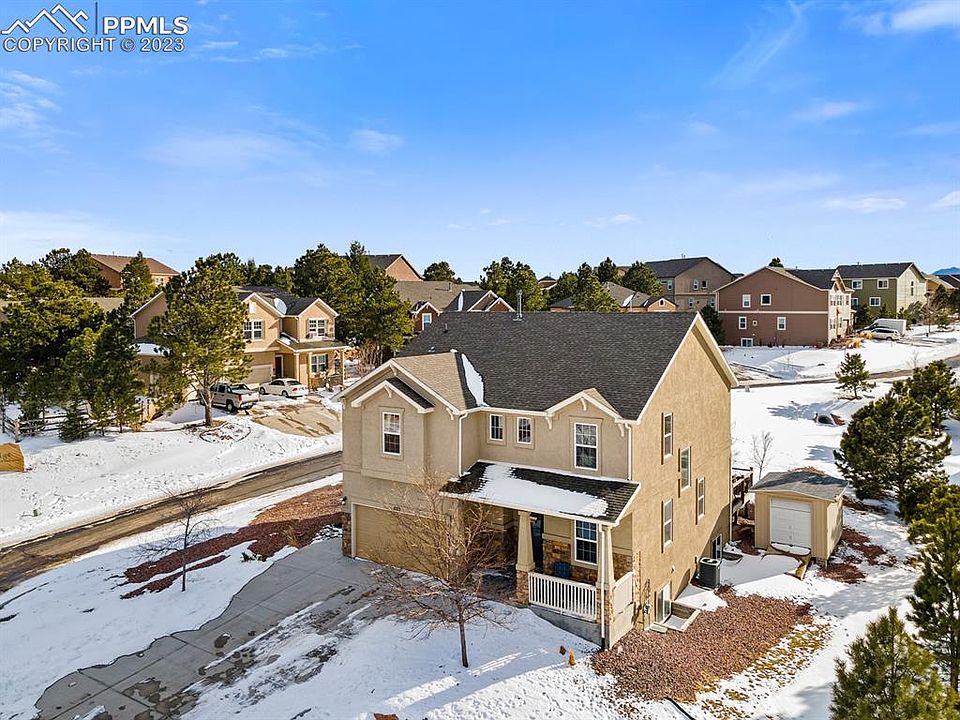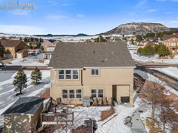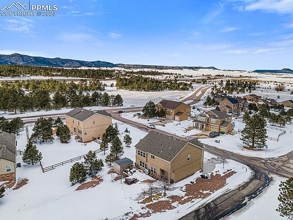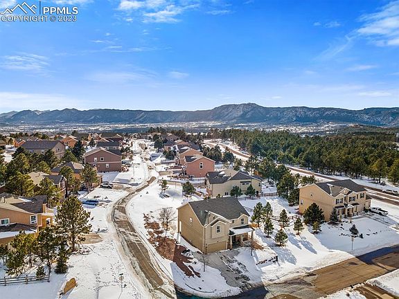 Live here and enjoy a comfortable and convenient life in the PRESTIGIOUS D38 SCHOOL DISTRICT close to Palmer Ridge High School and Misty Acre and Woodmoor trails. Just 25-minute drive to Denver Tech Center and 20 minutes to Downtown Springs. Picture yourself waking up every morning to Pikes Peak Mountain top views! This home is truly made for both entertaining and everyday living, with plenty of space and great outdoor entertaining options from a covered front porch for your coffee in the mornings to an expansive extended concrete patio pad in the backyard with over 500 sq ft of composite entertaining deck and hot tub. The heart of this home, the kitchen, is a modern European chef’s kitchen with stainless steel appliances, plenty of cabinets, large pantry, double ovens, gas burner range, InstaView sleek glass panel refrigerator, center island with breakfast bar seating with adjoining dining and family rooms, ideal for gatherings. Excellent storage throughout. Each level has linen closets, coat closets and in the deep tandem garage there are ceiling storage rafters and space to park 3 cars or your long bed truck enclosed inside the garage. Don't miss the spacious outdoor shed that stays too. Upgraded features include: A/C, 9-ft ceilings. Premium garden level basement. Elite stainless-steel new appliances, solid slab granite in kitchen, extended Evoke flooring on entire main level, arched architectural designed doorways, great indirect lighting, ceiling fans, upgraded ceramic tile flooring in all bathrooms, bull nose drywall, thermopane windows, whole house humidifier and large upper level loft for a 3rd family/living room option. Main floors are all upgraded to Evoke Burt pre-engineered 4-inch-wide plank, coffee brown wood grain pattern premium flooring. Dedicated main level Office, Study or Den. Laundry is conveniently located on the same level as the Primary and 2 other secondary bedrooms. Basement features family room or game room, 4th bedroom and 4th bathroom.