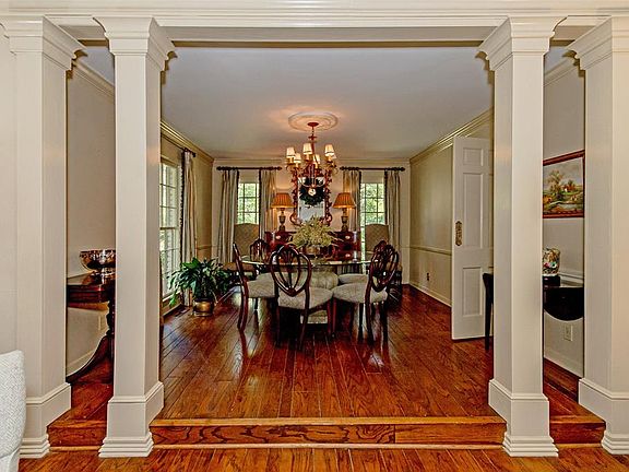 Perfectly perched on a large lot in popular Hillwood. This lovely home has been freshly painted inside and out. Enjoy the elegance of the formal living room and dining room or the casual living areas. The floor plan is ideal for entertaining. Large family room with nice storage and great view of the very private back yard. Eat-in kitchen is open to den #2 with fireplace and custom built-ins. The first floor also offers a master suite, 2nd bedroom with private bath, home office with wall to wall bookcases, wet bar, freestanding ice maker, laundry room and another full bath. Upstairs you have 3 bedrooms and a large renovated bath. Beautiful hardwood floors throughout the house. No carpet! Enjoy the private backyard with beautiful landscaping and landscape lighting. The great storage shed is a bonus also! Purchaser to verify school zones and square footage.