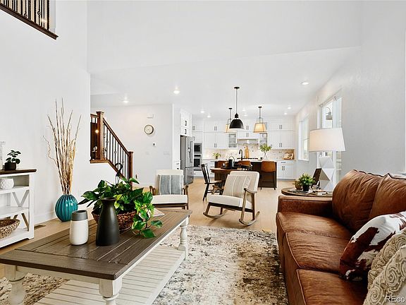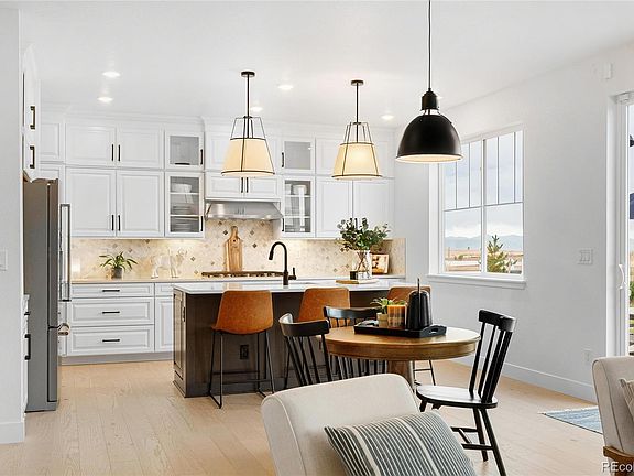 Welcome to a masterpiece at Murphy Creek! This well appointed 1 year old home offers breathtaking mountain views and gorgeous golf course vistas, perfect for enjoying spectacular sunsets. Tucked in a serene cul-de-sac location, this home gives off model home vibes - combining luxury with comfort. With refined finishes and thoughtful upgrades throughout, the coveted Golden Gate floor plan features a two-story family room that invites natural light, complemented by a spacious loft that overlooks the living area. The gourmet kitchen is a chef's dream, showcasing KitchenAid appliances, double ovens, and a stylish butler's pantry with coffee bar that seamlessly connects the kitchen to the dining room. A main floor office with elegant French doors provides a perfect study or flex space. Throughout the main level, you'll appreciate the beautiful white oak engineered flooring and modern farmhouse design elements that create a warm and inviting atmosphere. Upstairs, you'll find four generously sized bedrooms, including a luxurious primary suite that offers a private retreat. The five-piece bath features a soaking garden tub and convenient laundry access directly from the primary bath. Plus don't miss the custom California Closet system to keep you organized. Head outside to your backyard oasis, where an extended paver patio awaits, complete with a built-in gas fire pit—ideal for cozy evenings under the stars. The professionally landscaped yard is enhanced by hardwired outdoor lighting, ensuring you can enjoy those amazing sunsets and stunning views every day. Also note, this home's unique placement to the #1 tee and club house makes it extremely rare for errant balls. With a three-car tandem garage for ample storage and parking, this home truly has it all. Experience golf course resort-style living right at home. Murphy Creek is a public golf course with no memberhip required. The neighorhood includes a pool, tennis court and seasonal clubhouse restaurant.