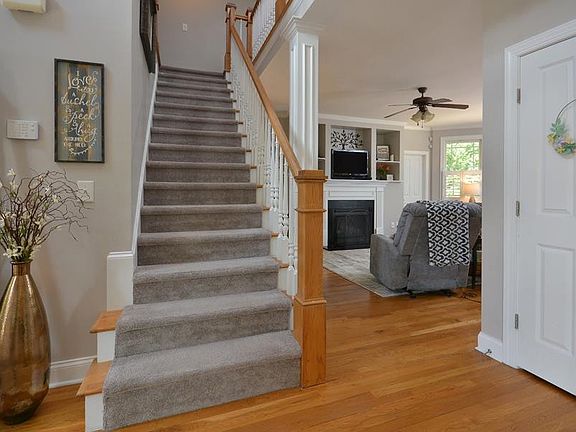 Welcome home! This home nestled in Snow Hill Preserve features hardwoods and an open main floor that contains a separate dining room convenient to the kitchen. The family room also leads to a cozy study ideal for at-home work. Options to relax exist with a front porch swing and rocking chairs or a screened-in back porch that is a joy throughout the seasons. Warm days are cooled with an outdoor ceiling fan and room for a patio heater on cooler evenings. The back yard features a brick patio with a built in fire pit. There is also room for a grill and social gatherings. Back inside and up the stairs on the 2nd floor you will find professionally cleaned carpets in all rooms and hallways. A spacious primary bedroom has an adjoining bath with double vanity sinks, a separate toilet, and a walk-in closet with built-in shelving. The larger bedroom could double as a bonus room or play or craft space. Two other bedrooms are nicely sized and share a full bathroom. Off the second floor another flight of stairs takes you to an unfinished attic that can be used for storage or finished out for an additional room.