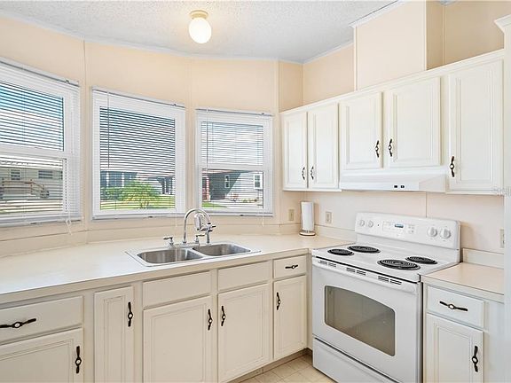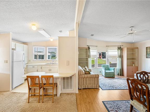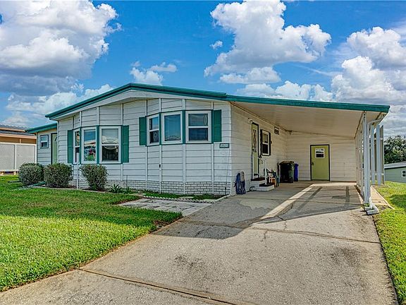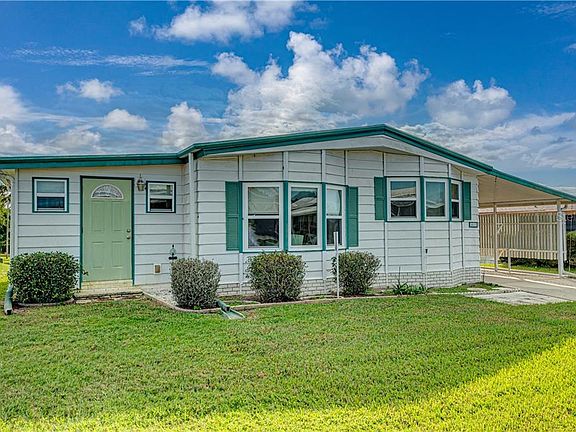 PARTIALLY FURNISHED 2 br, 2 bath home in a popular active community that is located minutes from restaurants, shopping and I4. This home has a spacious kitchen with plenty of cabinets, a convenient breakfast bar and bay windows that allow plenty of natural lighting. The open floor plan includes a dining room with built in cabinets, spacious living room with an enclosed Florida room under central air/heat for extended living space. The washer/dryer are conveniently located inside with extra storage cabinets. The master suite has a walk in closet and spacious bath with additional linen storage. The utility shed is oversized with a workbench and tools included. Enjoy an active lifestyle with a community pool, clubhouse, shuffleboard, pickleball, dock, walking path around the lake and much more.
