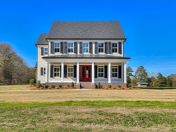 Gorgeous, brand-new home in Columbia County on a flat 2.74-acre tract of land, built by Southern Living builder BEC Custom Homes! This classic farm-style design features a rocking chair front porch! Through the front stained, French doors you'll see beautiful pine floors throughout with herringbone detail in the foyer, shiplap accents on the walls, and a bright & airy formal dining room. The family room is open to the large kitchen area that allows for easy entertaining and family gatherings! This area features a tongue & groove ceiling with coffered beams, and a brick gas log fireplace. The kitchen features white cabinets, quartz counters, KitchenAid appliances, gas range, 2 ovens, French Door Refrigerator, brick backsplash, and under cabinet lights. The butler's pantry connects the dining room to the kitchen with additional storage, ice maker, and walk-in pantry with beautiful stained wood door! Main level owner's suite features 2 vanities, sitting vanity area, quartz counters, walk-in tile shower, claw foot tub, & walk-in closet with wood shelving. The upper level features a fabulous 19x18 playroom area with 4 bedrooms (all featuring walk-in closets!) and 2 shared baths with stone counters & tiled shower/tub combos! Walk-up 3rd floor attic storage! Off the back hall is a mud bench with shiplap details, and spacious laundry room with utility sink! Attached 2-car garage is 24x24 with epoxy floor and door access to 3rd car parking pad! Special features: tankless water heater, setup for electric car charger, Wi-Fi capable irrigation controller & garage door opener, gutters throughout, metal roof on porches, pine floors throughout, pre-wired for surround sound & alarm system, and soft close cabinetry! Utilities: buried propane, septic system, & well. Enjoy living in Appling with no covenants or HOA!