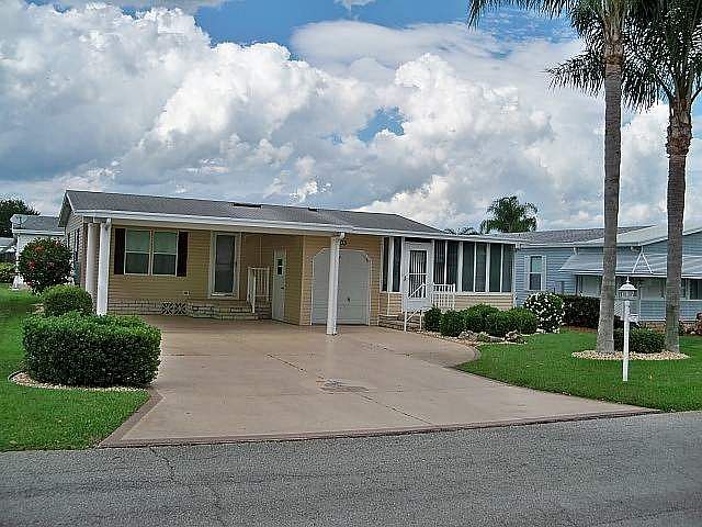 This 2 BR 2 Ba has a FL Room and a Golf Cart Shed. Home Features, Kitchen with lots of cabinets, center island, breakfast nook and dining area, Inside laundry, easy maintenance landscaping, Double sink and step in shower in master bath, and a golf cart too. A Must See.