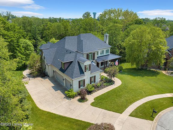 Elegance and comfort harmonize in this stunning home located in Longwood, situated within the Award-Winning North Oldham school district. Privately set at the end of a cul-de-sac on a scenic 1.16 acre lot, this remarkable 5 bedroom, 4.5 bath custom built home is a brilliant blend of style and peace. Manicured landscaping and an attractive covered porch greet you at the entrance and provide a serene spot for enjoying time outdoors. French doors lead you into the foyer where you will experience gorgeous hardwood flooring and an open concept, enhanced by natural light from colossal architectural windows. With entertainment in mind and elaborate details, each room has been meticulously crafted to offer an impressive custom-built experience. Your first floor study is to your right, with a gas fireplace and decorative marble surround. To your left is a formal dining room with dazzling chandelier lighting, wainscot paneling, bay window, and extra space for a serving buffet and cabinetry. A two-story great room features a wall of windows and a second fireplace, surrounded by custom built-ins. Your gourmet, eat-in kitchen is open to the great room and features a Viking gas range, new refrigerator, and stainless steel built-in microwave and dishwasher. Soft-closing custom cabinetry and a spacious pantry provide abundant storage and style, as well as the adjacent Butler's Pantry in the eat-in area. A large island with bar seating also has a stainless steel, under-mount sink, and extra storage. This is the perfect layout for hosting gatherings that can flow inside and out with sliding door access to your covered back deck. The entry to your attached 3-car garage is also conveniently located next to the kitchen, as well as a place to hang your coats and extra cubbies for keeping it organized. A first floor laundry room has an extra sink and cabinetry and is located near a main floor bathroom. Your primary bedroom suite features trey ceilings and an ensuite bath with water closet, tiled walk-in shower, jacuzzi tub, and gorgeous double vanities with granite. Two large walk-in closets will provide abundant storage and organization for your wardrobe. From your primary bedroom, you also have private access to your outdoor oasis. Moving on to the second level, there are two staircases leading you; one near the front door and the other from the kitchen. Your second level offers three spacious bedrooms, all with walk-in closets and tall ceilings. One bedroom has a private bathroom, and the others share a jack and jill. A spacious bonus room is perfect for a guest room, office, or craft room. The second floor also offers a massive recreational room with endless possibilities. This room could serve as a gym, play room, library, and countless other options. Your walkout lower level is perfect for entertaining with a large wet bar with custom cabinetry, granite countertops, stainless steel wine cooler, ice maker and mini fridge. A cozy media room is great for movie nights and has a projector, theatre seating and surround sound. An entertainer's dream, your game room has another fireplace with exposed brick, and a convenient space for a billiard table. There is also a guest suite with its very own private bath in this lower level, as well a fitness room and tons of unfinished storage space with utility room. Surround sound is also featured throughout the home. Your private outdoor oasis begins with a peaceful covered deck overlooking a salt water swimming pool. This will surely be the spot where you'll enjoy swimming and grilling out on hot summer nights. You'll also love the hot tub with a nice umbrella cover, providing extra shade during your lounge time. This home has irrigation in the front and back, and a fully fenced-in yard. This home has so much to offer, and you may never want to leave. Especially within the Longwood community. With a clubhouse, swimming pool, and tennis courts, this neighborhood has something for everyone to enjoy.