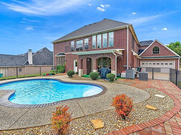 Luxury living awaits in this custom-built brick and stone home in a meticulously planned Community. With over 4,000 sq. ft., 5BA, and potential for 6BR, this residence features two fully-equipped kitchens with double appliances, a grand island for entertaining, two family rooms, two fireplaces, a game room, and a media room. Detailed molding adds sophistication throughout. Outside, enjoy a Covered Patio, Pool, and Spacious private lot. Conveniently located minutes from Lake Texoma and a short drive to McKinney and the Metro-Plex. This home seamlessly combines luxury, comfort, and convenience for the ultimate living experience.