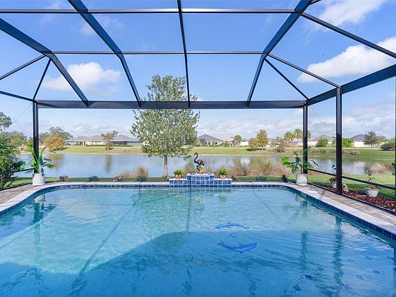 Want to live near Eastport in a LUXURY home but without the enormous BOND that goes along with some of the new construction? Experience refined living in this exceptional BRIDGEPORT MODEL, offering 3 bedrooms, 2.5 baths, and an atmosphere of effortless sophistication. From the moment you arrive, the home exudes elegance with its LIFETIME-GUARANTEED SHARK’S COATED DRIVEWAY, pristine lava rock LANDSCAPING, and expanded TWO-CAR PLUS GOLFCART GARAGE. Step through the front door into a residence that seamlessly blends luxury with comfort. The open-concept living areas are enhanced by CROWN MOLDING, DECORATIVE CORNICES, and three exquisite TRAY CEILINGS in the dining room, living room, and master suite. Matching GRANITE COUNTERTOPS and UPGRADED LIGHTING AND CEILING FANS throughout the home elevate every space with style and cohesion. The chef’s kitchen is a showpiece—featuring CRISP WHITE CABINETRY, BLACK STAINLESS STEEL APPLIANCES, BUILT-IN DESK WORKSTATION, and a SOLAR TUBE that bathes the room in natural light. The adjoining laundry suite offers built-in cabinetry and a UTILITY SINK, creating both beauty and functionality. The luxurious primary retreat easily accommodates a king-sized suite and boasts a spa-inspired bathroom with a walk-in Roman shower, dual sinks, separate vanity, and dedicated linen closet. PLUS, there are two separate walk-in closets! Two guest bedrooms are joined by a Jack-and-Jill bath with tiled tub and shower, while a powder room off the main living area provides added convenience for guests. Step through the sliding glass doors—complete with remote-control blinds—to your private outdoor sanctuary. The HEATED SALTWATER GUNITE POOL and SPA within the BIRDCAGE ENCLOSURE invite relaxation year-round. Pendant lighting, two cooling outdoor ceiling fans, and patio pavers for the flooring create the perfect ambiance for sunset entertaining. Beyond the pool, enjoy an UNINTERRUPTED 30-FOOT PANAORAMIC VIEW of the shimmering POND, framed by specialized screening for a seamless connection with nature. Every detail of this home reflects thoughtful design and timeless quality. It is more than a residence—it is a statement of elegance and comfort. Schedule your private showing today to experience one of the most captivating homes in the area. The remaining bond balance on this home is $28,348.73 – a far cry from some of the new construction, which is seeing bonds as high as $72,000!!! FURNITURE, SMALL APPLIANCES, DECOR, AND GOLFCART ARE NEGOTIABLE.