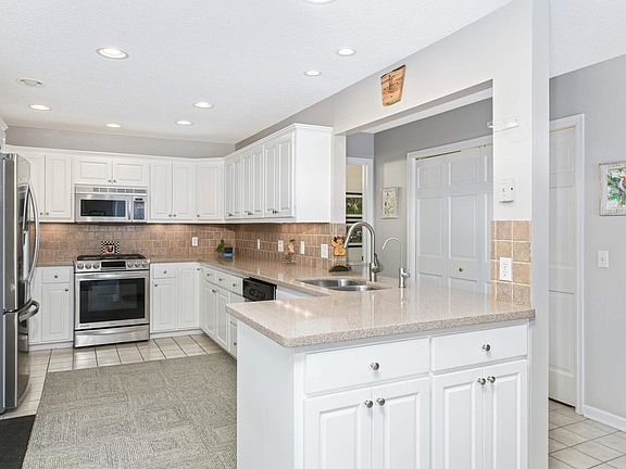 Beautiful and pristine end unit at Brackett's Crossing overlooking the pond and 10th fairway. East facing deck is the perfect spot for morning coffee. Main floor bath has 36" wide doorway to closet and passes through to main floor bedroom. So many updates to this home...beautifully tiled upper master bath with custom cabinets, closet, walk-in shower and soaking tub. Lower level has walk out patio to walking trail to Brackett's tennis court and club house. Epoxy floor garage with EV outlet already installed. New roof this year (2024). Mechanicals like new - furnace (2022), water heater (2018), washer/dryer (2022) - not to mention whole house filtration system!! School bus stop less than a block away. Walk across the main road to Murphy Hanrehan Traihead for a nature walk. Brackett's has options for membership - from full golf membership to dining and social memberships (tennis/pickleball and swimming pool) priced