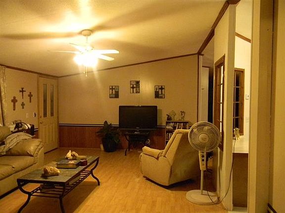 This well maintained 3 bedroom, 2 bath manufactured home on 1 acre has recent updates throughout including laminate flooring, fresh paint, faux leather kitchen cabinets. Master bath has garden tub with tile surround and faux marble counter tops. Morning sunrises and evening sunsets can be enjoyed on the spacious front and back covered porches. The six stall barn and pasture with chain link fencing offers excellent horse accommodations.