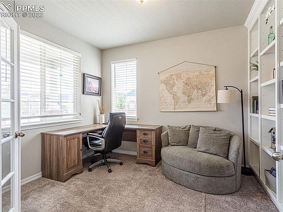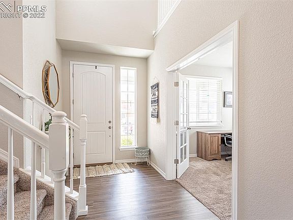You will love this home and the stunningly-beautiful community, appropriately named "Lake of the Rockies," and all it has to offer! It is nestled in by the mountains and Monument Lake with gorgeous views! This beautiful well-maintained 2-story home invites you in with a charming covered porch and 8' front door. Entering the home, you are greeted by 9' ceilings! Work from home in the main level office, with French Doors for added privacy, and a guest bathroom just around the corner. Continue on to the open-concept Kitchen, Dining area, and Living room w/ cozy gas fireplace. Large windows throughout offer abundant natural light. The kitchen boasts a large island, stainless steel appliances, ample cabinet and counter space, and a walk-in butler’s pantry. A nice-sized mudroom leads out to the 3-car tandem garage. The main-level is ideal for entertaining and walks out to a sizeable composite deck overlooking the fully-landscaped and fenced in backyard. Upstairs is the large owner’s suite and attached spa bathroom offering a double vanity, oversized soaking tub, and free-standing shower. There is also a walk-in closet with plenty of room. You will find a second and third bedroom upstairs, as well as another full bathroom with double vanity. Upper-level laundry room for added convenience. You will also love the additional living space in the loft area! The full basement has plenty of space to make your own! It features a rough-in for a future bathroom and ample space for additional bedrooms, living space, home gym, storage, etc. Exterior basement walls are insulated. This coveted private community overlooks Monument Lake where you can fish, kayak, paddle board, or just enjoy the peaceful beauty that surrounds you! The neighborhood is also just a short walking distance to Historic Downtown Monument where you will find dining, shopping, and entertainment options. This home is a must see! Schedule a showing today!