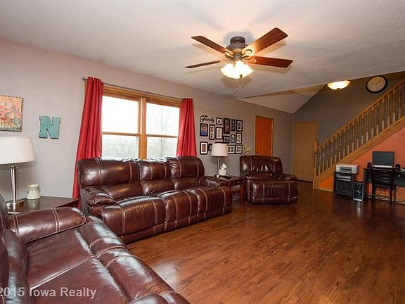 This acreage is in a great location and has beautiful views all around! Just minutes from WDM, this one and a half story home is the one for you. With over 3000 sq ft finished, you will be greeted as you enter w/ a 2nd story entry. The spacious LR lends itself to lots of natural light, enjoy your large kitchen and dining area for all of your family gatherings. This home features a main floor master, master bath w/ bubble tub, 2 large additional bedrooms on the 2nd level w/ full bath to share. Enjoy your family/rec room in the lower level as you entertain during the summer using your walkout and patio to extend it to the outdoors. Beautiful views off of the back deck are included along w/ an above ground swimming pool, 30 x 54 detached garage and a 30 x 36 outbuilding. Call this acreage your home today!
