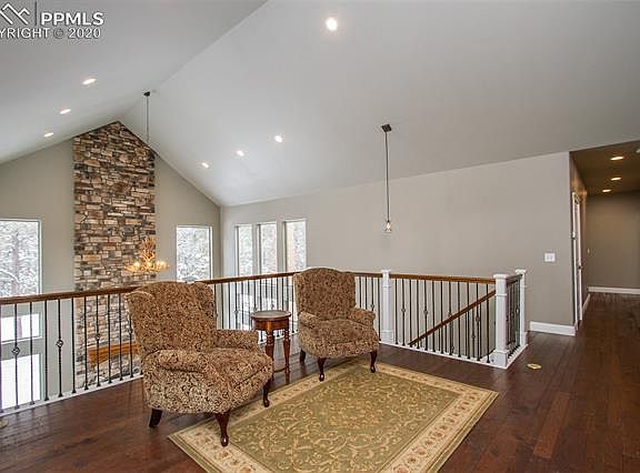 Amazing one owner CUSTOM home in Black Forest on a private culdesac lot in the woods. Enjoy the sights and sounds of Black Forest on the large covered trex deck. This home has lots of amenities: durable engineered hardwood flooring, main level master with adjoining 5-piece bath, 2 laundry rooms, kitchen with island-granite counter tops-gas cook top-stainless steel appliances-counter bar, loft style living room, lower level great room with fireplace, theater room and wet bar for entertaining, floor to ceiling windows, and hand troweled walls throughout. This home has it all!