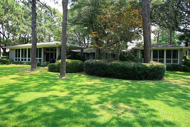 Magnificent Views of 8th Hole on Dogwood - Lakewood Golf Course in Point Clear, Views are captured from oversized den, covered porch, patio and master. Main house built in 1966 but den and master with vaulted ceilings added in 90's and kitchen updated in 1996. Complete restoration done in 2014/15. New wood floors throughout home. Brick floors refinished and resealed. Upgraded baths with new fixtures and hardware. New paint throughout interior and exterior. New 30 year shingles and outside light fixtures. New hurricane resistant Marvin windows and exterior door. New wet bar and powder room cabinetry and marble countertops. New interior light fixtures and doors. Added high end gas logs and mantle to fireplace. New Hunter Classic ceiling fans in den and outdoor patio. Garage updated with new paint and storage.