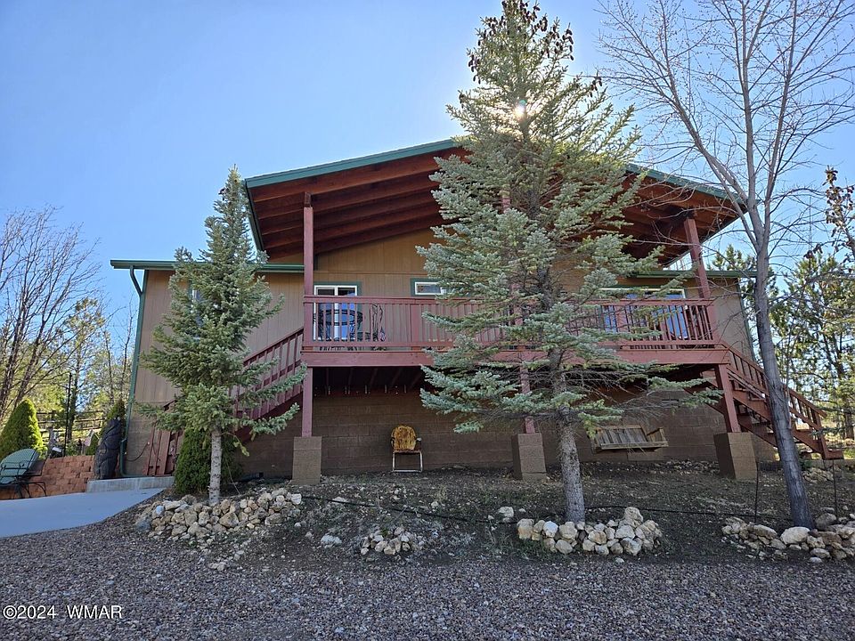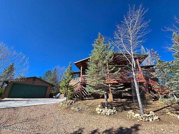 On top of the world! This secluded, mountain cabin sits on top of a hill offering spectacular panoramic views and backs up to USFS for quick, isolated off-roading, hiking, wildlife viewing & much more. Property at dead end road offering additional privacy. This immaculate 2004, 1232 sq.ft., mountain cabin sits on 1.25 acres of horse property if desired. This home offers; 20x22, 2-car garage,10x12 utility shed w/loft, new roof & paint on both garage & home, covered deck front & back, RV septic hook up, gutters, lg. various trees & plants surrounding home, open concept, 2, possibly 3 bdrm, 1.75 bths, possible office, french-doors leading out to back deck, pellet stove, large dual pane windows throughout, vaulted ceilings. HOA PAYS WATER, FRESH WELL WATER. All in the heavily, wooded town of Heber/Overgaard, Az., in the sought-after community of Buckskin Artist. Hoa pays for H20.
