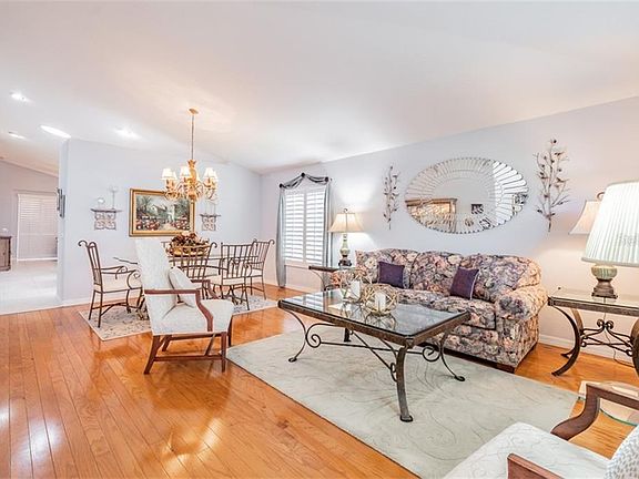 This 3 bed, 2 bath home PLUS DEN is bright and sunny with vaulted ceilings and shutters on the windows. Open kitchen has granite countertops, ample cabinet space, built-in desk area and views family room with a dining area. Screened in patio with access to another patio providing direct sunlight. Spacious master suite provides a neutral color scheme and plenty of room for a reading nook. A truly fabulous master bath with oversized showing with seating, soaking tub and double vanity. The den is the perfect work at home area or library, your flexroom awaits! Roof replaced in 2017, newer A/C, gutters, water softener and reverse osmosis. LIVE THE HERITAGE SPRINGS LIFESTYLE - Resort style living at its absolute finest! Clubhouse with restaurant and bar, fitness, tennis, golf, cards, billiards, dancing and more! SUPERB TRINITY LOCATION, CLOSE TO DINING, SHOPPING, MEDICAL AND AIRPORT! Caution - Adults at Play!
