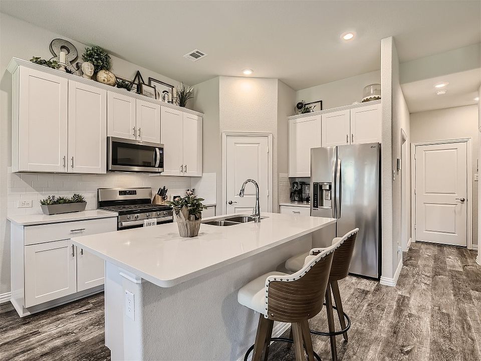 FLEX room up front can be a Fourth bedroom, or a GREAT home office! Beautifully updated Aubrery home, Meritage built with many upgrades,The fabulous Kitchen boasts a gas cooktop with a vent to the exterior, Beautiful Quartz countertops, Plenty of cabinets, Additional storage throughout the home, additional network drops installed( cat 6 E. Walk in closets in all bedrooms and the game room. will also leave additional garage ceiling storage racks in addition to the mounted tvs. Attic is temp. controlled with foam insulation. Decorative lighting throughout, ceiling fans in many rooms, covered patio out back, Beautiful luxury vinyl plank flooring. The backyard is oversized with plenty of space for the family to play and to grill out your favorite meals. Meticulously maintained, move- in ready home, Hme is Only 2 years old. Easy access to all main roadways, Washer, Dryer, Refigerator. can stay if needed