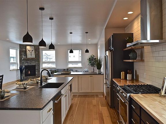 Scandinavian style finishes coalesce with form & function to offer modern elegance in the highly sought after Legends subdivision. Circle sawn fir floors on the main level are framed by hemlock fir doors & trim throughout. Open kitchen provides navy cabinetry and contrast cream island with hickory butcher block countertop. Features two stories with bedrooms and living spaces on each level, 4 bedrooms/3 baths +den with large laundry (+laundry chute!)& mudroom. Enjoy Bridger views from the spacious master suite. Complete with LED lighting and 4,400W solar array for energy efficiency.