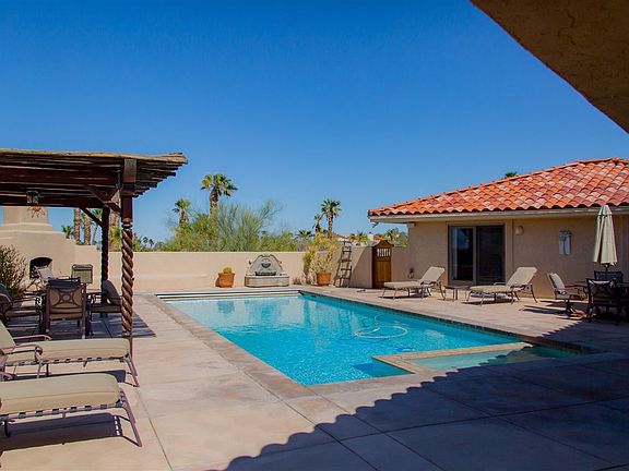 Investment opportunity, desirable 4 bedroom, 4 bath, single level, pool, spa, quiet & peaceful location yet close to Rams Hill Golf Club & San Felipe Rec center. Property has good rental history & potential. Private, walled front and rear courtyards, with fountain, outdoor fireplace, pool/ spa and views of the Santa Rosa Mountains. 2019-05-19