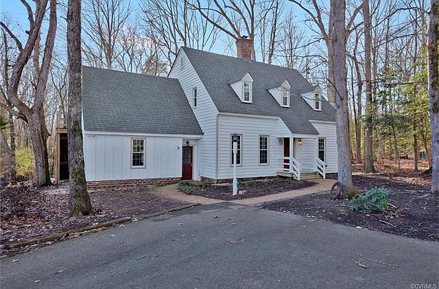 Welcome home to this one-of-a-kind Wlliamsburg-style Cape overlooking a lovely pond on 2.6+ park-like acres in Countrytown, a quaint, picturesque neighborhood along Judes Ferry Road in eastern Powhatan, just minutes to Rt. 288. A paved driveway leads to the private homesite shaded by large hardwoods. The home features exquisite refinished pine floors throughout. The spacious living room opens to the family room with custom wood burning brick fireplace with two built-in wood boxes. Sunny French doors provide access to the 16x10 screened rear porch overlooking the pond. The kitchen opens to the dining area and family room and has smooth top range, refrigerator and dishwasher. The versatile floor plan provides a possible first floor master with full bath attached. Upstairs, there are beautiful refinished pine floors throughout. The second master bedroom overlooks the pond and has a private full bath with tile shower and access to a wonderful library with built-in bookcases and exterior entrance. There is a spacious walk-up attic and large linen closet as well as a third full bath upstairs. The roof and windows were replaced in 2013. Truly a rare find.