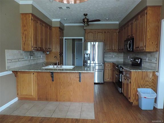 Step into the large foyer of this 4 bedroom 2 and 1/2 bath home located in a quiet culdesac close to everything in Prattville. The large Great Room has a gas fireplace and wood floors. The eat in kitchen has granite countertops and stainless appliances and the refrigerator remains. The master bedroom has 2 walk in closets and the master bath has a separate shower and garden tub with 2 vanity sinks. This home features a split bedroom plan with 3 bedrooms and bath on the other side of the house from Master Bedroom. Step out the back door onto the covered patio that overlooks a huge salt water pool with a pool house/workshop. The backyard is large with a fully fenced backyard. The 2 car garage has a storage area with a laundry sink.