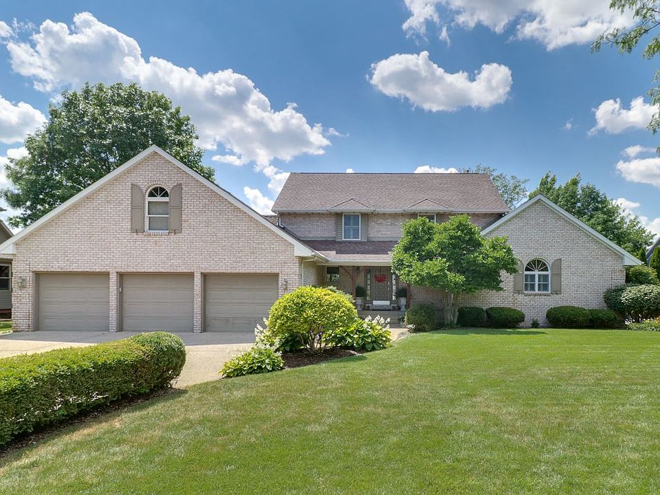 Stunning 1.5 story ALL brick, WALK-OUT home, sitting on over half an acre...ON the lake with it's very own dock! Custom, gourmet kitchen designed by Roecker's Cabinetry complete with Wolf 6-burner gas range & commercial hood, built-in Wolf wall oven & microwave with convection feature, warming drawer, TWO Bosch dishwashers with beautiful cabinetry fronts, Kohler farmhouse sink, KitchenAid fridge, Italian marble backsplash, very thick granite tops, custom drawer inserts (mixer stand, spice rack, knife rack, rollouts... the works!) AND a giant island featuring additional copper sink. Cozy eat-in table or sitting area leads to yet another great deck off kitchen perfect for grilling! Dedicated dining room offers sliding doors to enjoy the perfect cup of coffee or glass of wine on a covered deck overlooking the lake, the huge yard & your dock. Cathedral ceilings & tons of large windows for natural light and amazing views of the lake & the sunsets! Massive bedroom sizes including first floor primary suite featuring bonus sitting area with french doors leading to private deck. Primary bedroom also includes a giant walk-in closet, updated ensuite bath with dual vanities, heated floors, custom cabinetry, walk-in tiled shower & jetted tub! 2nd floor includes full bath & 2 enormous bedrooms. Completely finished & updated walk-out lower level showcases 9 foot ceilings & features 2 spacious bedrooms, another full bath, 2 large storage rooms, a FULL renovated 2nd kitchen AND an awesome family room with handsome fireplace & built-in bookcases. Gorgeous decks span entire back of home overlooking the huge, massively landscaped, 0.60 lot with exclusive dock. Plantation shutters. Irrigation system which utilizes a pump from lake water. Can fish, kayak, paddleboard, etc on lake. Please request list of improvements & covenants. MUST see home!