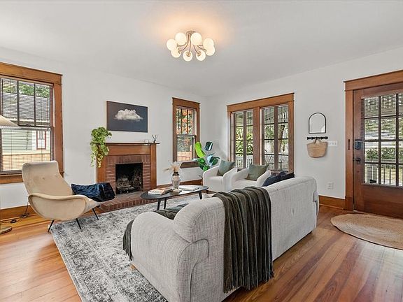 Beautiful 4 bedroom 3 bathroom lakefront home offering timeless character with a modern twist and breathtaking views on Hourglass Lake. A large, inviting front porch with a classic porch swing welcomes you into a living room featuring a cozy fireplace, seamlessly flowing into the dining room. The dining room opens to a spacious, updated kitchen with an eat-in area, perfect for everyday living and entertaining. Three bedrooms are located off the dining room, including one with built-in shelving ideal for a home office or library, another with the sweetest architectural nook, and a third with an ensuite bathroom and charming sitting area. The primary suite is a private retreat tucked away off the kitchen, offering exceptional privacy. A dedicated hallway with a large walk-in closet leads to an oversized bathroom featuring a seamless glass shower. The bedroom is finished with a stunning wood ceiling and overlooks picturesque Hourglass Lake. Enjoy outdoor living on the expansive deck, ideal for entertaining, overlooking a serene backyard that leads directly down to the lake. Additional features include a detached garage, ample storage space beneath the home, a recent conversion from septic to city sewer, EV charger, and new panels. This one-of-a-kind lake house blends historic charm with modern conveniences in an unforgettable setting.