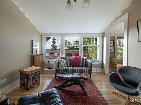 Seeking a unique pied-à-terre on quiet street in the heart of Capitol Hill - want no more. Welcome home to the iconic Chesterfield. Rarely available for public sale, this boutique top-floor flat awaits its next suitor. The open floor plan features classic Tudor box beam 9' ceilings, updated kitchen & bath, 2 spacious bedrooms, walk-in closets, fab natural light, oak floors, territorial views & a coveted sense of privacy. 89 strollability score, close proximity to local shops & eateries on bustling 15th & 19th, minutes stroll to Volunteer Park & Light Rail make life ultra convenient. A cohesive & invested community of proud owners; HOA covers heat, sewer, garbage & property taxes. Storage & breezy street parking. Co-op living at its finest.