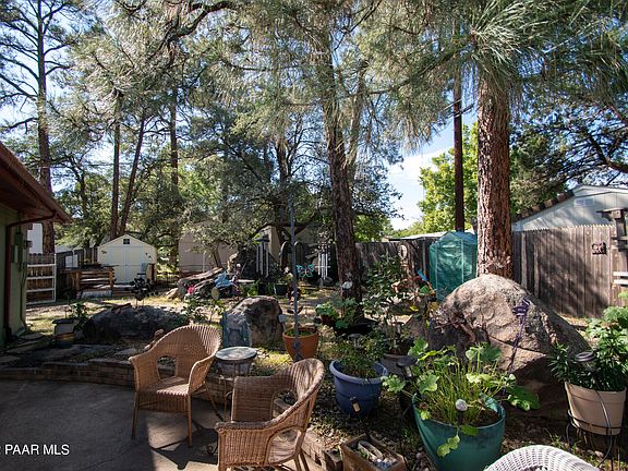 This DOUBLE LOT makes for a huge, fenced backyard. Great for pets, raised bed gardens, and the THREE sheds with power, and lighting. The front yard has curb appeal with large Granite boulders. The entire property is appointed with mature Ponderosa Pines, in this desirable mature area of Prescott. Classic Block Construction really maintains home comfort.SO MANY upgrades and maintenance done in the last 7-9 yrs., including, new roof, seamless gutters w/covers, Exterior paint, HVAC, granite countertops, Anderson windows, electric blinds, Stainless Steel LG appliances. So much to see. You must see this well cared for home. Proud Seller offers Home Warranty at COE