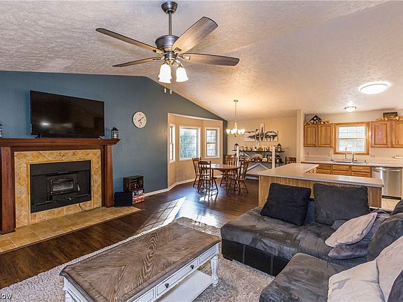 Welcome home to this 3 bedroom, 2 full bath completely updated raised ranch in Springfield local school district! This home sits on .78 acres /private setting, and features vaulted ceilings, open floor, plan, fresh paint, FULLY applianced kitchen, bar/island and tons of cabinet space. Check out the Living room area as it boasts a very inviting fireplace and family seating area. Who doesn’t LOVE a front porch on Summer / Fall nights? This home also prides itself on a back, walk out patio, and a second floor deck area for entertaining. Basement is full and walk out. Equipped with tall in height ceilings, this space is all ready to be finished to add to the square footage. Make sure to ask about the long list of updates in the attachments for your immediate viewing. Lots of pride in ownership in a magnificent location. Call for your private showing today. One year, Seller Paid Home warranty included for buyer piece of mind.