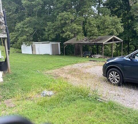 Summer Get Away on large corner lot in Rough River subdivision. Original mobile home doubled in size, completely enclosed with family room and bedroom added. Family Room opens to porch across rear of house. Interior needs work. Space for 2nd bath. Heating and air all updated. 10 X 20 storage building plus carport. CAUTION: kitchen, dining area has weak places in floor.