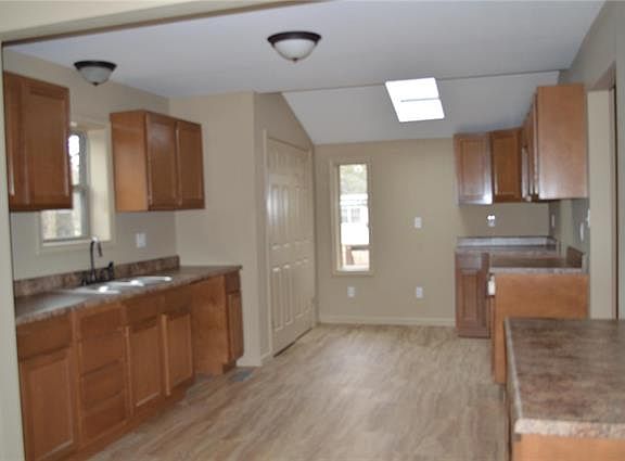Ranch home, Completely remodeled, updated, freshly painted, and just outside of town. Rustic log home with a wrap around deck that leads into the enclosed porch. Enter into the large family room with the beautiful wood burning stone fireplace and wood flooring. Kitchen has plenty of new cabinets, desk area, dining area, and ready for your last minute touches. The Master bedroom has a walkout to back deck and into the Bathroom The bathroom has a new walk-in tub, plus a separate shower and also adjoins the family room. The laundry room and the second bedroom completes the main floor. The Extended 2 car garage is attached to home with a covered breezeway. Many updates include: roof, electric, plumbing, wood flooring, carpet, vinyl, and windows. Quiet, Secluded and close to schools and shopping.