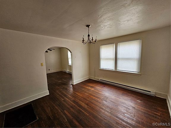 Nice 2 bedroom home features fenced yard, large front porch, hardwood floors, stove, refrigerator, 2 large bedrooms, living room, dining room, 1 full bath & electric baseboard heat!