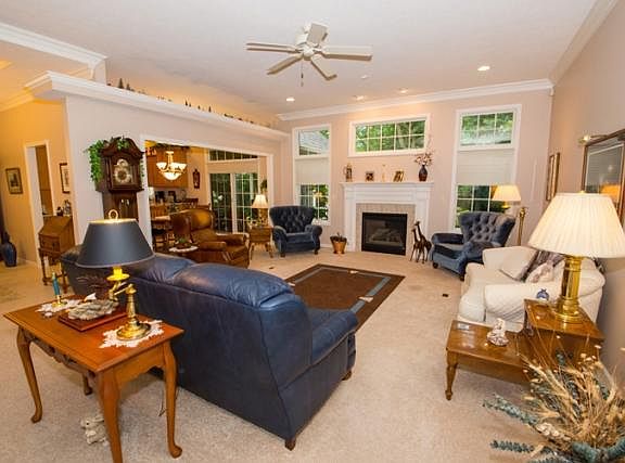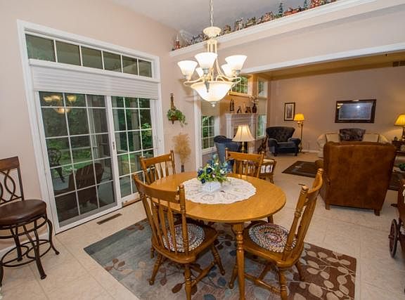 Beautiful villa on a cul-de-sac in gated Barrington Estates. Enjoy the villa lifestyle in this open concept home that has been marvelously maintained. Foyer entry leads to living room with gas log fireplace flanked by numerous windows to enjoy the beautiful scenery. Living room is open to the spacious kitchen (new appliances 2016) and informal dining area. Sliders lead to the relaxing screened-in porch and lusciously landscaped backyard with pond and patio. Two bedrooms on the main floor, including the master with en suite bathroom with garden tub, separate shower, dual sinks, and walk-in closet. Den could be used a guest bedroom or office. Convenient first floor laundry and full bath. Finished lower level has half bath. Unfinished area has plenty of room for storage. Stunning curb appeal will draw you in, the amenities will bring you home. Association takes care of: grass, snow, fertilizing, sprinkler blow out and start up, spring & fall clean up, and the pond.