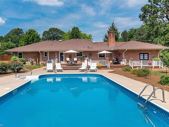 NEW ROOF TWO dwellings...ONE property, 2.3 acres. Brick ranch of 2500+/- SF and cozy cottage secluded from main house. Cottage has been used for in-law quarters and most recently rented. Main house has oversized rooms, two bedrooms and extensive storage. Triple deck over looks exquisite pool and manicured grounds worthy of Southern Living article Convenient location on cul-de-sac street.