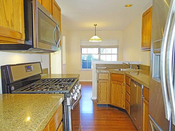 This is a beautiful, bright & airy townhome located in Brookstone Community with three bedrooms and 2.5 bathrooms - one of the largest floor plans offered in this community. This townhome backs up to the wooded area and is located on a premium lot offering loads of privacy. The entry hall welcomes you with its wood flooring, and leads to a spacious kitchen with plenty of cabinet space, granite counter tops , gas cooking and newer stainless steel Whirlpool appliances. There is a also a breakfast room with a large bay window. Additionally there is a powder room and laundry room on the main floor. The open and spacious living room features a wood burning fireplace and a dining room offering plenty of natural light. On the second floor is you will find a large master bedroom with dramatic high ceilings, and sumptuous master bath featuring Jacuzzi tub and walk in shower. Two other bedrooms share a nice hall bath with tub/shower. Private patio off the dining room offers an ideal space for warm weather cook-outs. A ground level one-car garage with interior access complete this fabulous home. Monthly condo expense covers roofing, siding and common amenities, plus trash and snow removal. Community amenities include pool, tennis and clubhouse, which are steps away from townhouse. Easy access to I-95, Route 1 and public transit to Philadelphia and Trenton. Call today - this opportunity won't last long.