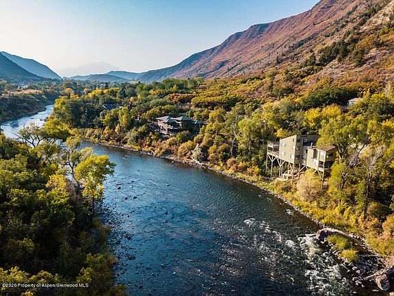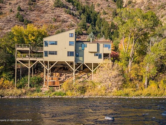 Stunning Roaring Fork River Views out every window! This custom home is literally perched on the side of the river. The main level has an elegant kitchen that opens into a dining space with direct access to the upper deck. Access to loft area above kitchen is a perfect space for calming the mind. A spacious main level master bedroom has a ready-to-work office space that sits adjacent to a wood burning fireplace, with two bathrooms-one featuring a soaking tub and the other a shower. The lower level hosts two bedrooms, a workout room and a family room with pool table opening directly to the lower covered deck. The home sits on nearly one acre with a well-kept and professionally landscaped yard. Residential Medium Density zoning allows for the studio to be finished above the garage.