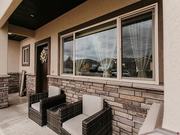This immaculate custom Sandoval built home features stunning high-end upgrades such as knotty alder trim and cabinets, granite countertops throughout the home, attractive engineered hardwood flooring and fluffy carpet. The entry flows into the spacious and bright living and dining rooms, the kitchen with island to include seating and a large pantry, and the kitchen package is included - gas range/oven, refrigerator, microwave, and dishwasher. The luxury continues into the laundry room also off the entry, with a granite-surrounded laundry sink, and included washer and dryer. The functional split floor plan has the well appointed master suite on the left side of the home, with a walk-in closet, dual sinks, and a tile surround shower. The two well-sized bedrooms on the right side of the home are separated by a hallway which has a full hallway bathroom. This home is better than new! Built in 2021, this home features lovely completed landscaping on this corner lot, a fenced backyard including large side gates for RV parking, concrete pads, and a pergola covered back space. The backyard is xeriscaped and houses a permanently affixed shed. In front are lush shrubs, grass and xeriscaping.