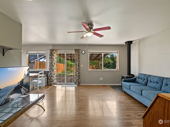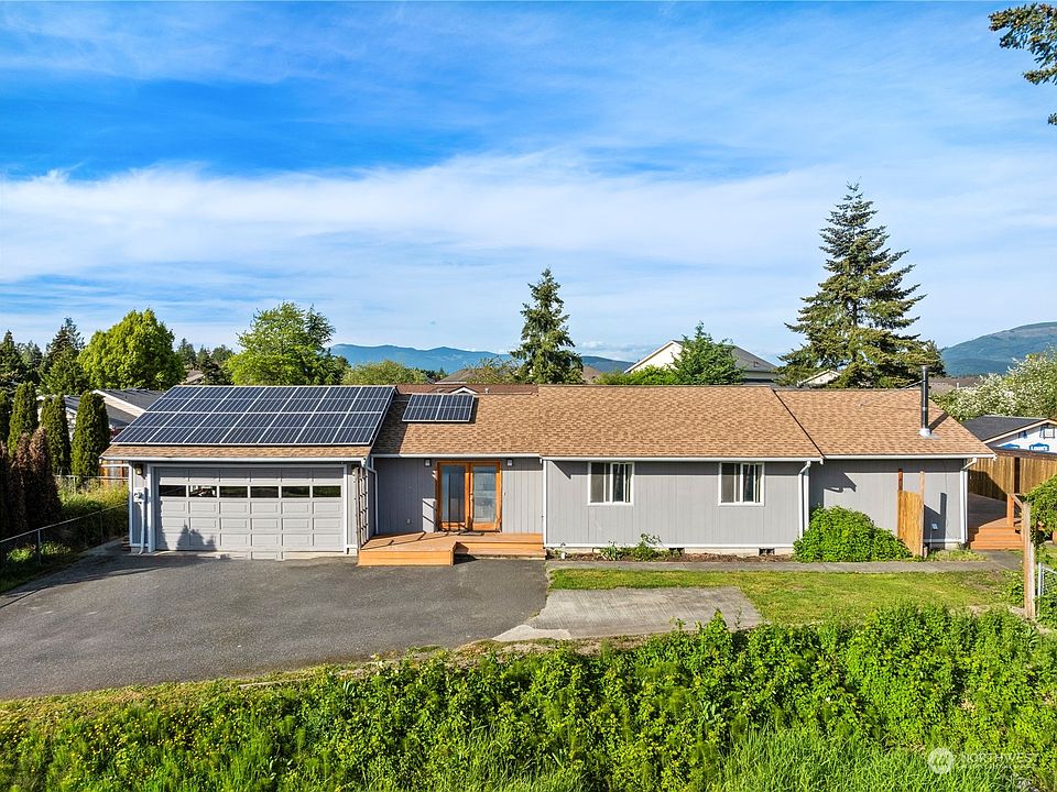 Escape to this cute rambler in a charming neighborhood with mountain views! Conveniently located near parks, schools, and the bus line, this home offers both serenity and accessibility. With a long private driveway leading to the property, you'll enjoy privacy and tranquility. The lush fruit trees and berry bushes add to the charm of the spacious backyard, offering a delightful harvest right at your fingertips. Inside, you'll find cozy, comfortable spaces perfect for everyday living; Outside, a large deck to survey your garden and orchard. Recent upgrades including a new water heater, roof, and solar panels ensure comfort and efficiency for years to come.