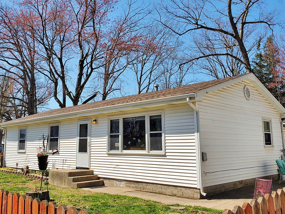 Welcome home to this delightful 3 bedroom, one and one half bath ranch! The large, bright living room features unique picture grids, fabulous built-in full wall display shelving and flows beautifully to the spacious eat-in kitchen. The kitchen boasts newer stainless steel refrigerator and range and is convenient to the roomy laundry with washer and dryer pair, lots of storage and door to rear for ease in outdoor cooking. 3 nice sized bedrooms, each with a double closet, a linen closet and updated full plus one half bath mean convenience and room for everyone. Outside, you'll love the fenced yard featuring many perennial plantings, concrete patio with overhead fairy lights and one and one and half car garage. Newer amenities include: roof, furnace, windows, plank flooring throughout, light fixtures, appliances and more! Central and close to everything yet maintaining a relaxing "get away from it all" feel, you simply must see this charming home today.