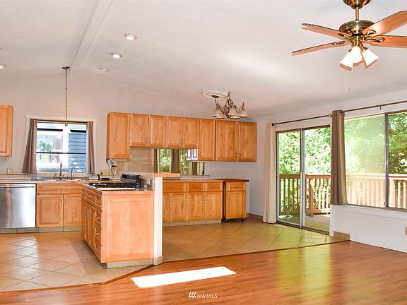 Welcome to this very well taken care of 2640sqft home. This property offers quiet and serenity as it backs up to dense wooded area. Large great room provides open view while working in the beautifully updated kitchen with an abundance of cabinets. The lovely frosted glass hallway door provides privacy to the main level 3 beds and 1.75 bath. Downstairs you will find an appt with private entrance, full kitchen, full bath, and 2 large storage rooms (one possibly could be finished for add bdrm). Mature landscaping offers herbs and fruit established for your enjoyment. Between the deck, yard, patio and firepit there are a number of places to find relaxation and areas of entertainment! All close to local shopping, I-405, Hwy 18, and Hwy 169.