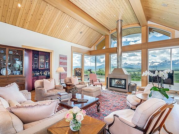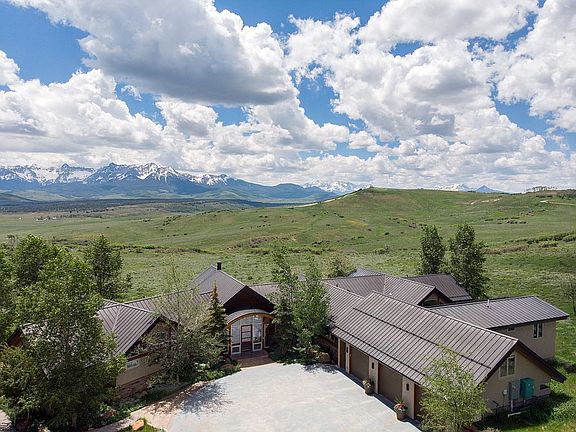 An exceptional Charles Cunniffe-designed mountain-modern residence on a stunning 58-acre parcel in the gated 2,200-acre San Juan Ranch. 180-degree views of the Cimarron, Sneffels and Wilson ranges are enjoyed from multiple living areas, the master suite, kitchen and the guest master bedroom as well as the extensive patio. A gourmet chef's kitchen features top of the line appliances including a Bosch double electric oven, Wolf gas and Dacor ceramic ranges, Dacor warming drawer, Sub Zero refrigerator, and a trash compactor. Knotted Maple vaulted ceilings throughout the main floor with accents of recessed lighting. The oversized 3-bay garage can accommodate four full-size vehicles and storage. A water purification system, solar hot water heating system and a generator are also included. Located 12 minutes drive from Cornerstone Golf Club! www.cornerstoneclub.com