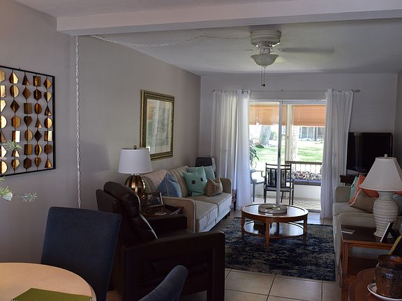 Move right in to an updated first floor unit with Central Air, located on a beautiful lot just steps from the community pool, clubhouse and laundry room! Tile floors throughout the unit combined with the updated kitchen and bath in neutral color scheme. The community amenities in this active 55 + community are right outside the back door of the unit and feature, heated pool, shuffle board, clubhouse with lots of activities. The convenient location is close to a Publix, Target, a bus stop, library and the beaches of Anna Maria Island are only 10 miles away. This unit is a great winter getaway or residence. Call today to schedule an appointment.