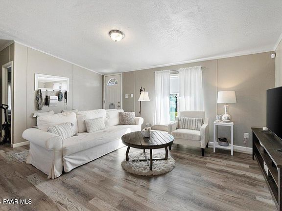 This beautifully updated home in the heart of Chino Valley offers modern touches and quality upgrades throughout, including a newer roof, HVAC system, water heater, and windows. Inside, you'll find a welcoming, light-filled ambiance thanks to the vaulted ceiling and a sophisticated gray and white color palette. Wood-style luxury vinyl plank flooring spans the common areas, enhancing both style and durability. The kitchen is a standout feature, showcasing ample white shaker cabinetry, quartz countertops, a stainless-steel appliance package, stylish light fixtures, and a spacious single-basin sink with an upgraded faucet. The split bedroom layout offers privacy, with the primary suite thoughtfully positioned on one side of the home. This serene retreat includes an updated en-suite bathroom