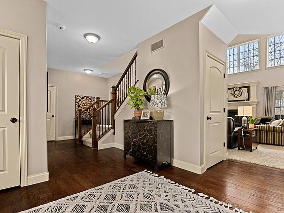 Welcome home to this stunning custom-built two-story home, tucked away in the desirable Oak Creek Subdivision! This one-of-a-kind property features a rare 4-car garage and a fantastic floor plan offering over 4,200 finished square feet of living space. The impressive entry foyer sets the tone for the rest of the home, with a soaring two-story great room with 18' ceilings. The real showstopper is the amazing 3-season room, featuring a cozy fireplace and vaulted ceilings that create a bright, open space perfect for relaxation and entertaining. Main floor master with vaulted ceiling and master bath featuring dual sinks, a beautifully tiled surround shower, and a soaking tub—perfect for unwinding after a long day. Enjoy 9' ceilings throughout both the main and upper levels, adding to the home's spacious feel. The finished basement offers a cozy family room, a 5th bedroom, a versatile exercise room that could be used as an office and plenty of storage. D52 school district. Schedule your showing today.. this one won't last long!