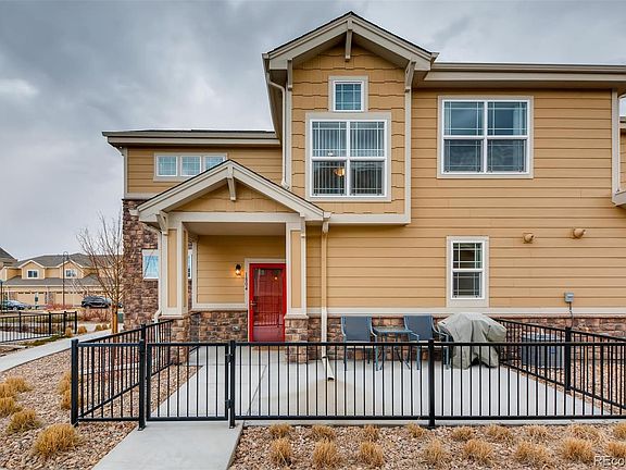 Immaculate end-unit in popular Murphy Creek with community "pocket park" right out your front door. This 3 bedroom, 3 bathroom townhome has an open floor plan and 9' ceilings. The kitchen is beautifully upgraded with slab granite counters, stainless steel appliances, and a welcoming breakfast bar. A spacious dining room is conveniently located between the kitchen and family room. An abundance of natural light greets you in the family room and throughout the home. The master bedroom features a vaulted ceiling, walk-in closet, and 5-piece bathroom with double sinks and soaking tub. A second floor laundry closet is a welcome convenience. An oversized 2 car attached garage has room for your "toys". All the Murphy Creek Community Amenities are just moments away, and the Murphy Creek Golf Course is within a half mile. Convenient access to E-470, employment centers, and shopping. This beautiful townhome has been lovingly maintained and ready for a quick closing to welcome you home...schedule your showing today!