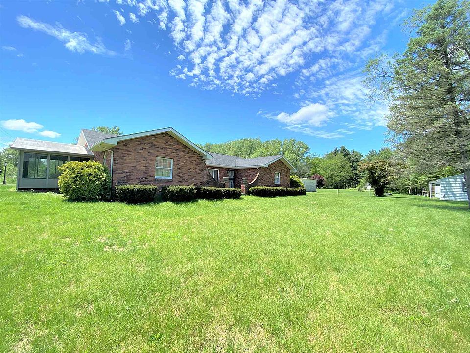 What an opportunity! This 3-4 BR, 2 BA all brick ranch sits on 3 acres with river frontage way in the back for the ultimate outdoor experience. You will love sitting in the beautiful 3 seasons room and watching the sunrise and the charming brick courtyard in the front. This home features an eat in kitchen with solid wood cabinets, formal dining room, large living room, den that could be a 4th bedroom, and 2 full baths. Store all of your toys, and work your hobbies in the 40X70 outbuilding with 14' ceilings, and a 40X20 concrete area. New Roof was installed in 2020. This is a single family dwelling but was built with the flexibility to be a duplex, including the meter base to accommodate 2 electric meters and a layout that could be easily separated. Sellers have never lived in the home and are selling it as is.