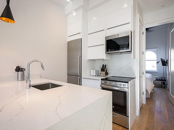 Experience luxury living in this newly renovated, fully furnished 1-bedroom, 1-bathroom apartment located on the top floor of a three-story row-house condo in the vibrant DuPont Circle neighborhood. Feel at home with a modern spacious floor plan, large closets, marble countertops, stainless steel appliances, and hardwood floors throughout. Enjoy the private rear deck and the quaint oasis rooftop deck off the living room, perfect for unwinding. The apartment features a king-size bed in the bedroom, Central Air and Heat, and a 55" Samsung Smart HDTV. All appliances are premium Bosch brand, and an in-unit washer and dryer are included. WiFi is also included in the rent. Dupont Circle is a traffic circle, neighborhood, and historic district in Northwest Washington, D.C. It is located at the intersection of Massachusetts Avenue NW, Connecticut Avenue NW, New Hampshire Avenue NW, P Street NW, and 19th Street NW. The neighborhood is bounded approximately by 15th Street NW to the east, 22nd Street NW to the west, M Street NW to the south, and Florida Avenue NW to the north. The local government Advisory Neighborhood Commission (ANC 2B) and the Dupont Circle Historic District have slightly different boundaries.
