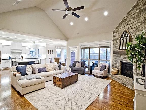 One of the most popular floor plans in highly desirable Oxford Ridge Subdivision. Exceptional open plan with cathedral ceilings and living room completely open to kitchen. Formal dining room can also be a great office. This huge & open kitchen is made for entertaining! Large center island (solid one piece granite slab) w/ tons of cabinets & veggie sink, upgraded backsplash, custom cabinets, pantry, & more. Real hardwood floors on main level & front spare bedroom. 2 Beds & 2 full baths on main level w/ 2 beds, bonus, and Jack/Jill bath on 2nd level. Great covered patio with extended concrete. Gas line avail for BBQ grill. Central Vac. Irrigation system. Insulated garage doors. Home audio. Large laundry room w/ cubbies, sink, & counter space. Don't miss the huge attic space for storage (access through 2nd level BR closet). Upgraded lighting. Great location near schools, parks, Bentonville Community Center, trails, & more! Curtains do not convey. Don't miss out!