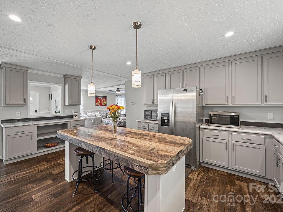 Don’t miss this beautiful home! The inviting front porch features low-maintenance Trex decking and a charming awning that conveys with the property. Inside, the open floor plan begins in the foyer and flows seamlessly throughout. To the right, you’ll find a formal dining room, while to the left is a spacious family room perfect for gatherings. The kitchen is a standout, offering abundant storage and an oversized double-sided bar with seating for family and guests. A sliding barn door leads to the laundry room, which also provides access to the backyard. The primary suite is truly impressive, featuring dual vanities, a relaxing soaking tub, a large walk-in shower, and a massive walk-in closet conveniently connected to the bathroom. Two additional bedrooms also include walk-in closets, ensuring plenty of storage for everyone. Seller also added a metal shed along with electrical hookups for an RV! This home is better than new and move-in ready. Schedule your showing today!